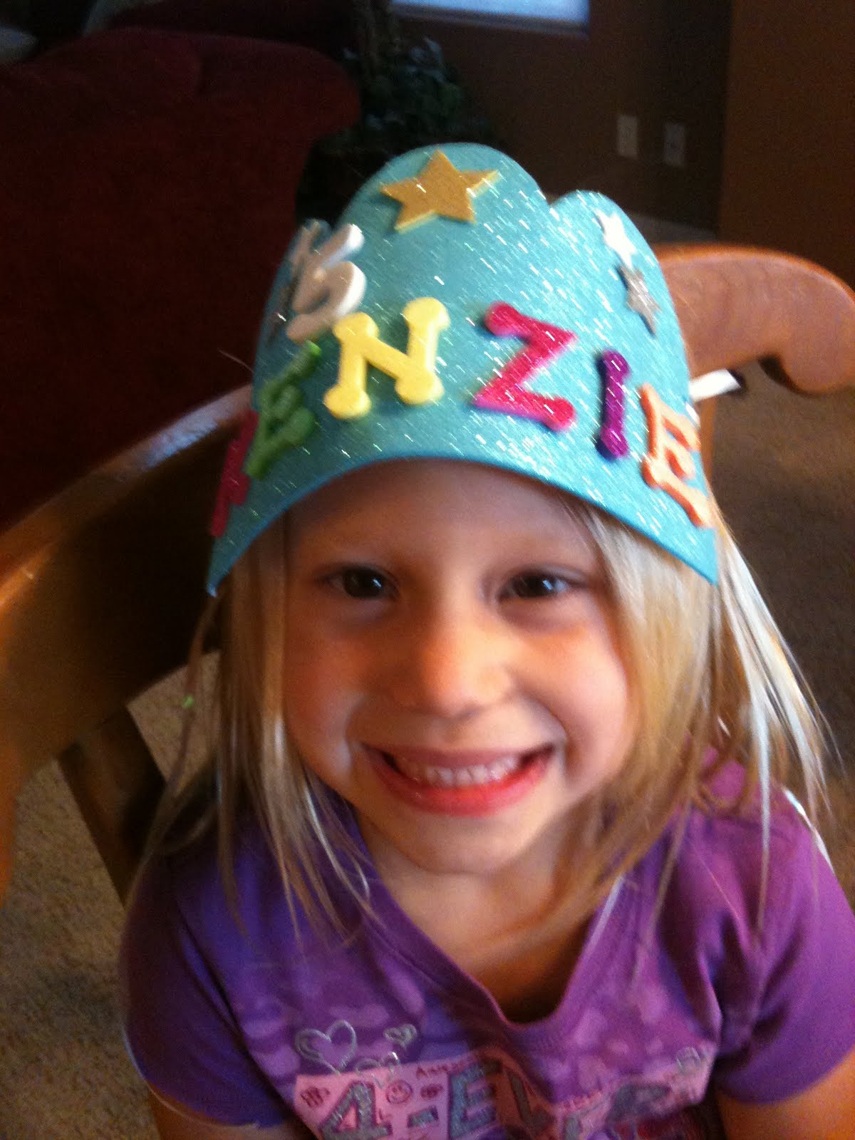 Kaylee was happy to wear her crown.We did our second in a row back to school feast. We had ribs with corn on the cobb, baked potatoes, and smores for dessert. Our theme was "Be a shining star." All in all it was nice, but Kelly and I had to laugh at how spazy our kids were, and that they didn"t really pay much attention to our little lesson. We decided it will get better as our kids get older!